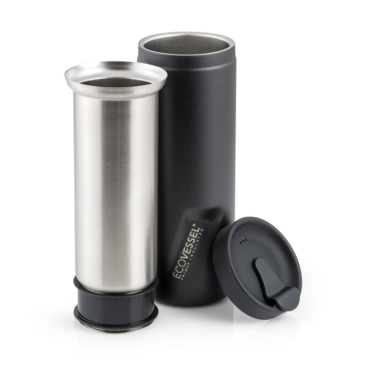 - PORTABLE FRENCH PRESS COFFEE BREWER: Enjoy instant deliciously brewed coffee on-the-go with the EcoVessel® Coffee Presse To-Go. An innovative French press coffee brewer and travel tumbler all in one! Enjoy a fresh, rapid-brewed cup in your hands in just 3 minutes.