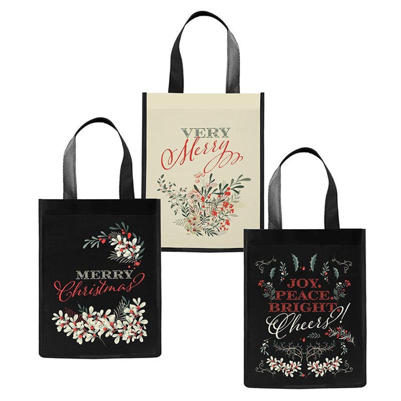 Bags read: Very Merry, Merry Christmas, Joy. Peace. Bright. Cheers!