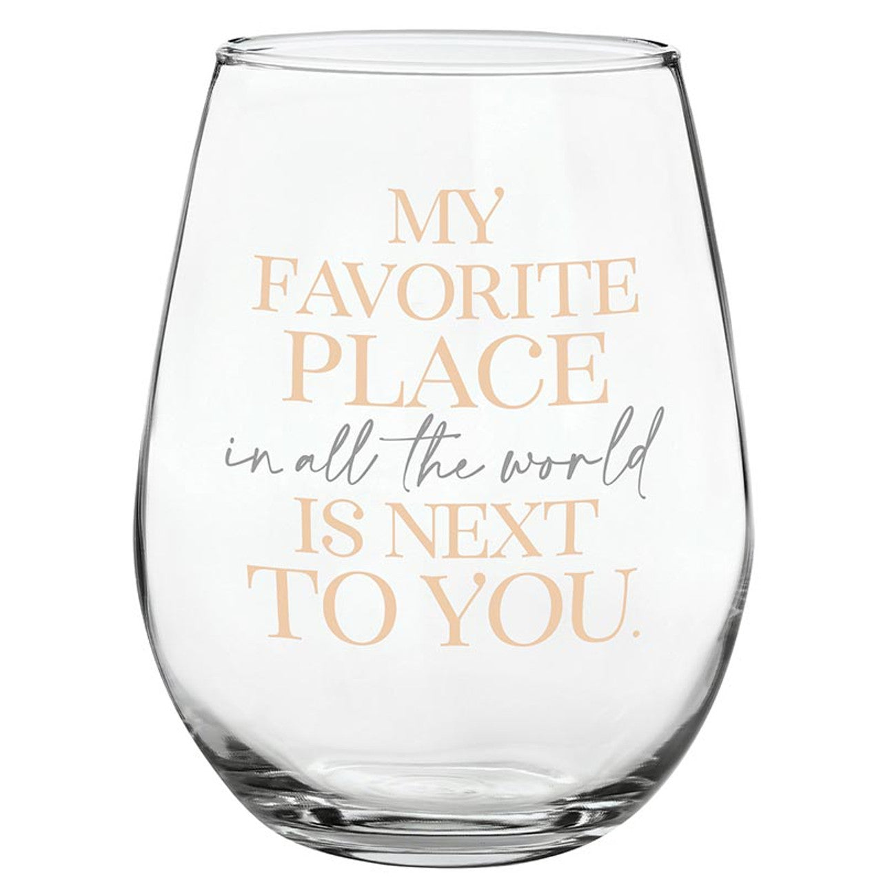 Stemless Wine Glass - My Favorite Place in all the World is Next to You