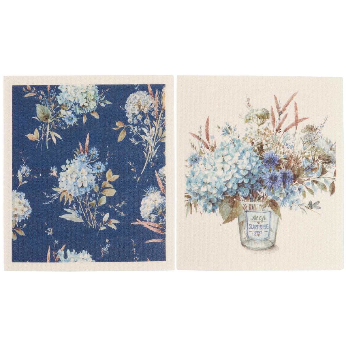 Safe to use on all types of surfaces, eco-friendly Swedish Dishcloths dry quickly and are antibacterial for more hygienic cleaning with reduced waste. This set of two Swedish Dishcloths features calming designs of florals in blue color palettes. Blue floral designs are replicated from original art hand painted in a delicate watercolor style. Our Blue Floral Swedish cloth set is ultra-absorbent and conveniently machine-washable for easy cleaning and reuse.