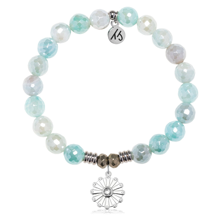 Aqua Agate Gemstone Bracelet with Happiness Sterling Silver Charm