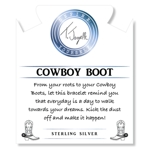 Denim Blue Agate Gemstone Bracelet with Cowboy Boot Sterling Silver Charm